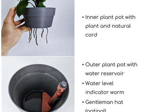 The self-watering system takes the guesswork out of plant care, while the charismatic earthworm mascot brings a smile to your face. 3D print your own to combine functionality and charm in one seamless creation.